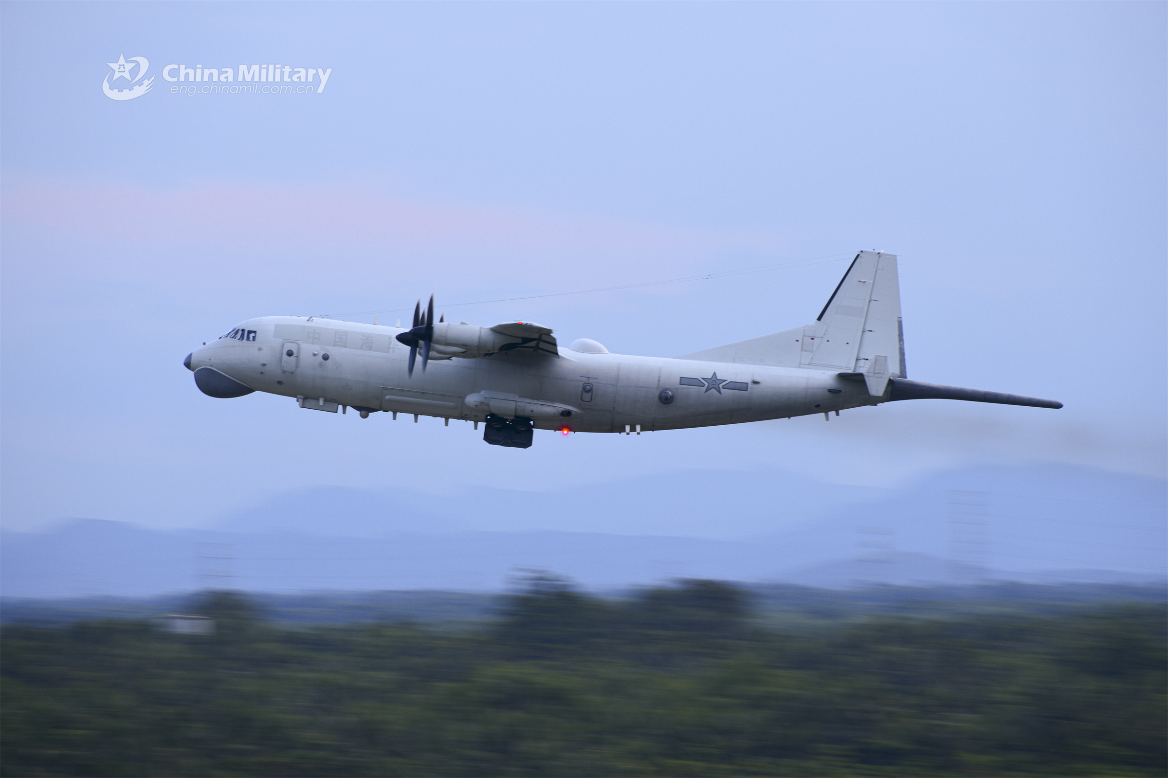 Anti-submarine patrol aircraft attached to a naval aviation regiment under the PLA Southern Theater Command takes off for a round-the-clock training exercise in early July, 2023. (eng.chinamil.com.cn/Photo by Qin Qianjiang)