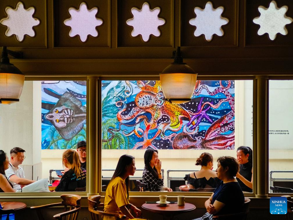 People are seen in a coffee shop in Chengdu of southwest China's Sichuan Province, on June 21, 2023. The 31st FISU Summer World University Games is scheduled to take place in Chengdu from July 28 to August 8, 2023. (Xinhua/Shen Bohan)
