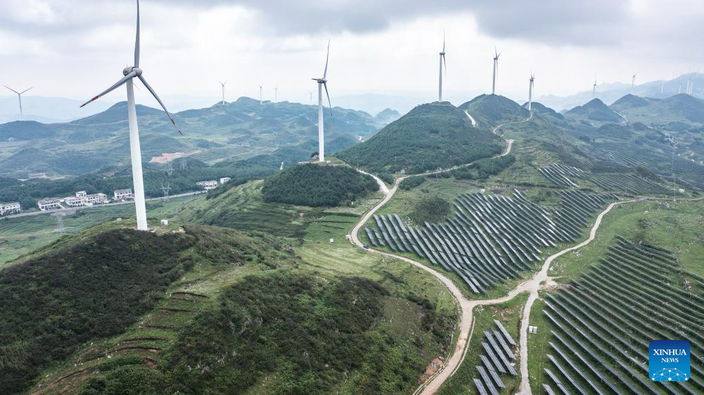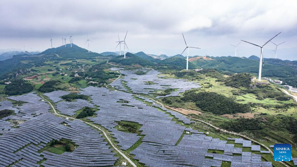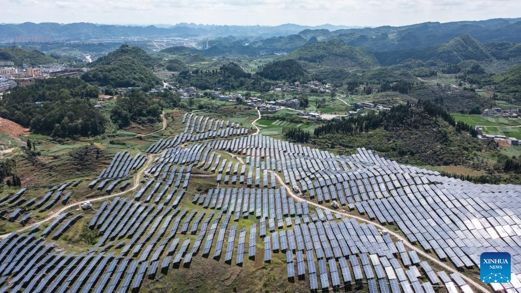 This aerial photo taken on July 5, 2023 shows a photovoltaic (PV) power plant in Xinqiao Town of Anlong County in southwest China's Guizhou Province. (Xinhua/Tao Liang)