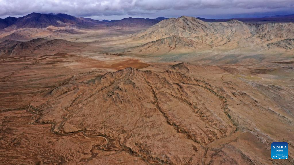 This aerial panorama taken on June 30, 2023 shows a view in the Altun Mountains National Nature Reserve in northwest China's Xinjiang Uygur Autonomous Region. With an average altitude of 4,580 meters, the Altun Mountains National Nature Reserve covers a total area of 45,000 square kilometers and is a representative of plateau desert ecosystem in China. (Xinhua/Cai Yang)