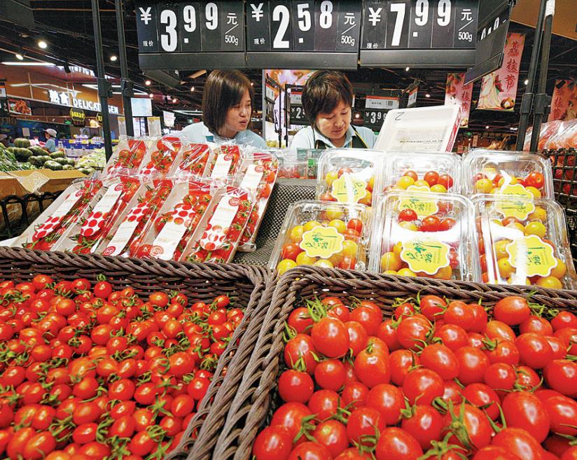 Shoppers buy groceries at a supermarket in Shijiazhuang, Hebei province. LI MINGFA/FOR CHINA DAILY