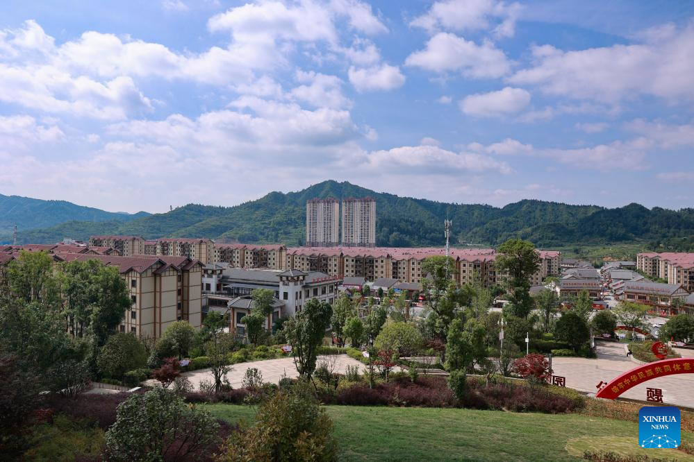 This photo taken on July 13, 2023 shows a view of the Baiyanglin sub-district in Bijie City of southwest China's Guizhou Province. Baiyanglin sub-district, home to nearly 30,000 residents, is the largest single relocation site for poverty alleviation in Guizhou. In addition to mobilizing all possible resources to improve employment and income for the residents, local authorities managed to build and operate a number of schools, kindergartens, day care centers, and clinics for the young, the aged, and the ailing ones. (Xinhua/Liu Xu)