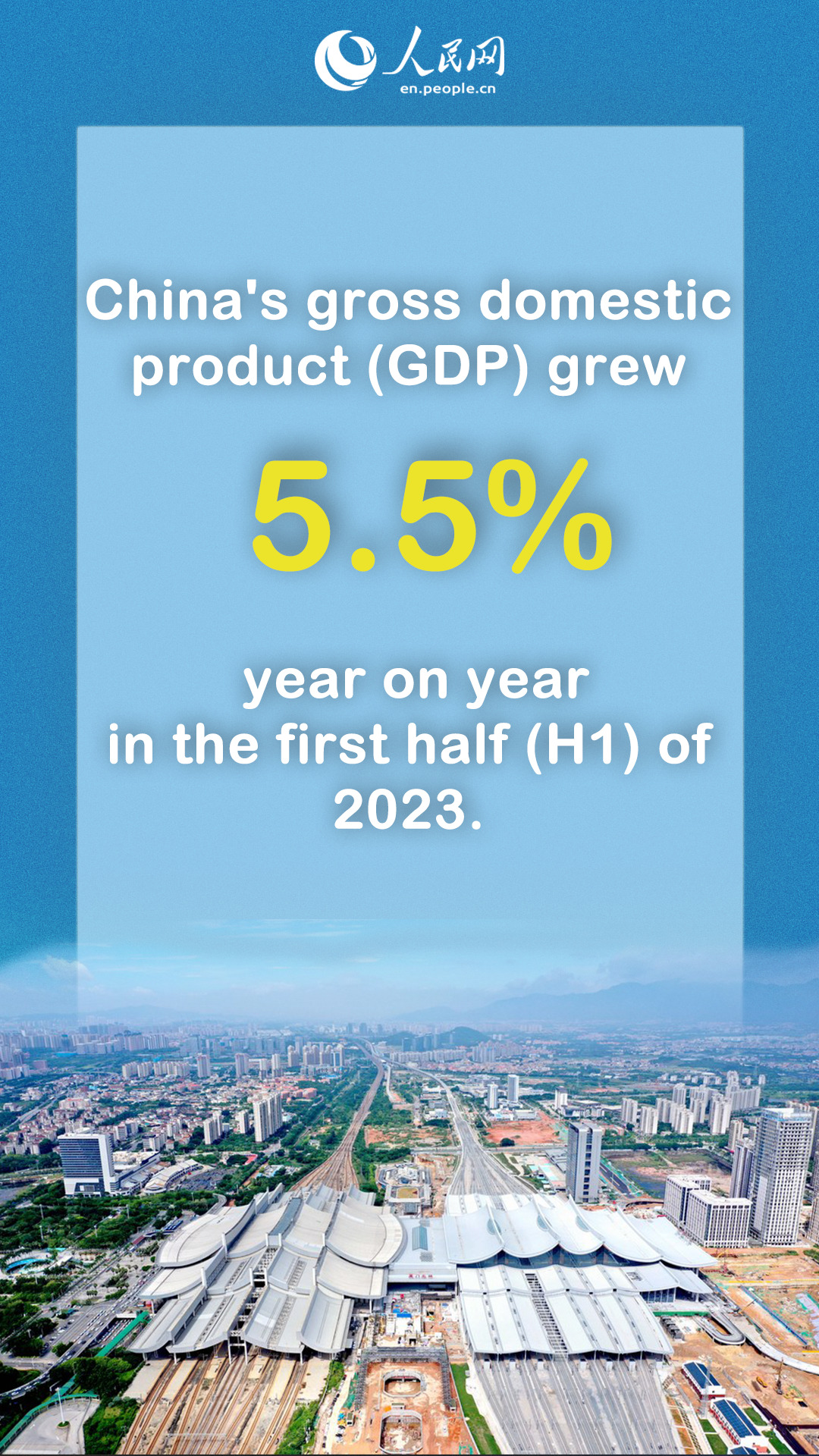 China's gross domestic product (GDP) grew 5.5 percent year on year in the first half (H1) of 2023.