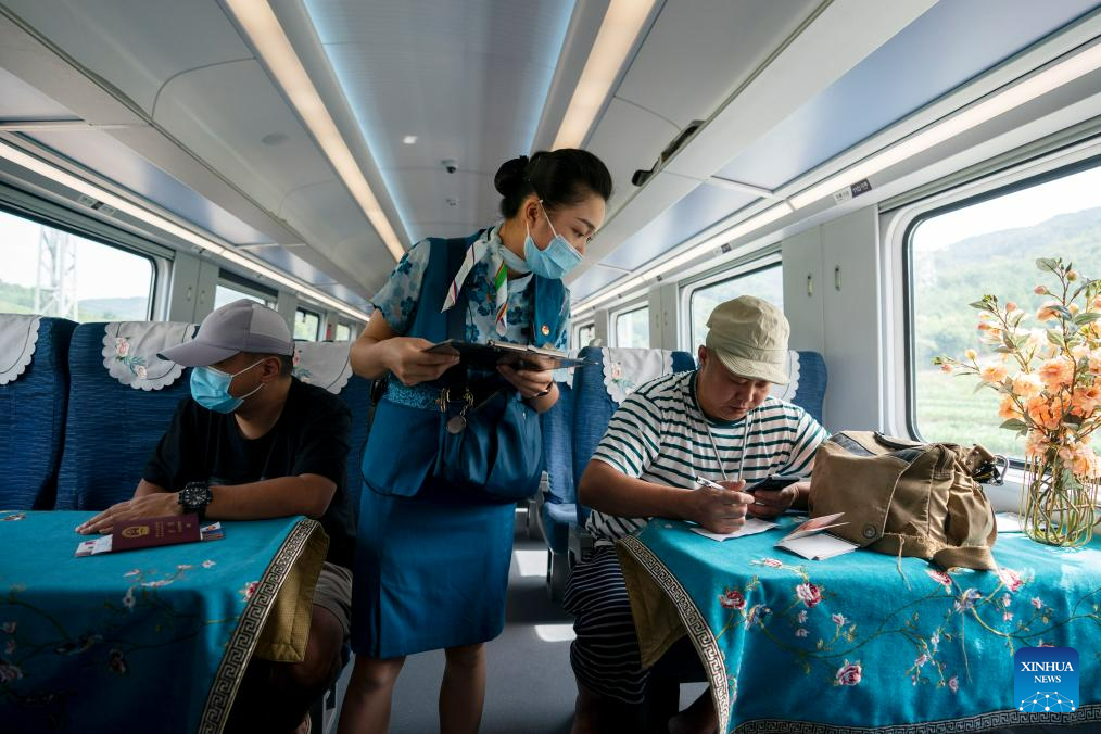 The 1,035-km railway connects China's Kunming with Vientiane in Laos. The railway has transported more than 16.4 million passengers and over 21 million tons of cargo as of June 3 this year.