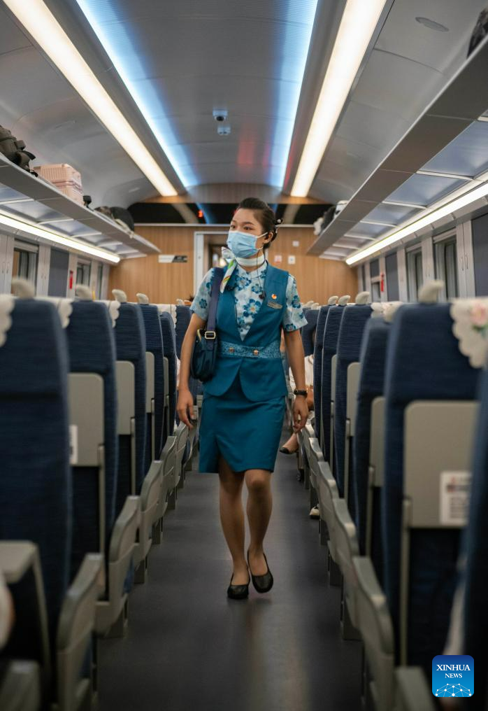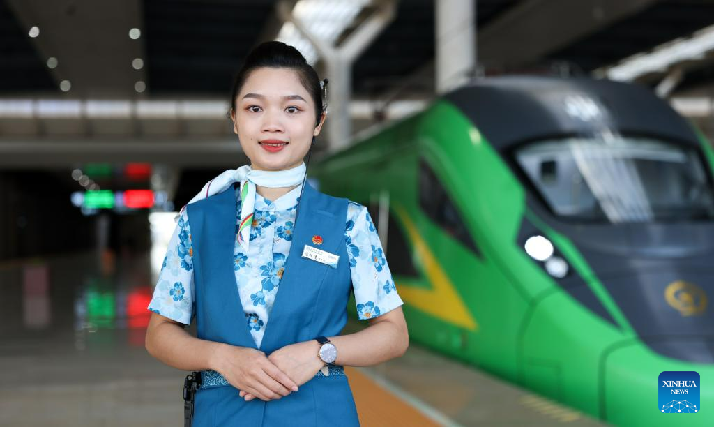 Yi Bofeng hails from Mengla County in Yunnan Province. After graduating as a Lao major from a technical college in the provincial capital Kunming in 2020, she was recruited as a train attendant under China Railway Kunming Bureau Group Co., Ltd.