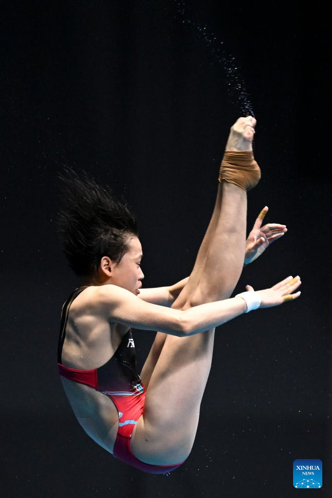 Quan Hongchan of China competes during the women's 10m platform final of the World Aquatics Championships 2023 in Fukuoka, Japan, July 19, 2023. (Xinhua/Xu Chang)