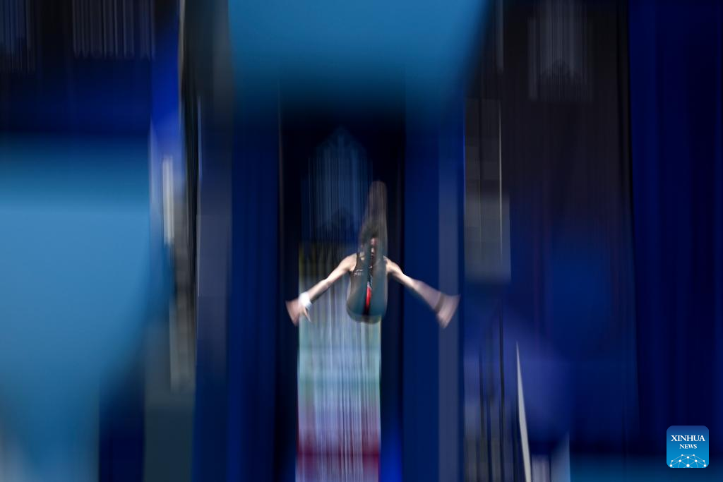 Chen Yuxi of China competes during the women's 10m platform final of the World Aquatics Championships 2023 in Fukuoka, Japan, July 19, 2023. (Xinhua/Xu Chang)