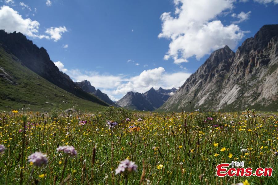 Picturesque summer scenery of Nianbaoyuze Mountain Scenic Resort in Jiuzhi County, Golog Tibetan Autonomous Prefecture, northwest China's Qinghai Province, July 19, 2023. (Photo: China News Service/Ma Mingyan)