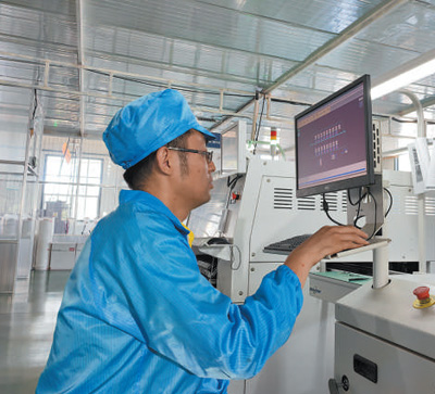 An employee works at Blue Carbon Technology Inc. in Rizhao city, east China's Shandong Province. (Photo/Shi Wanli)