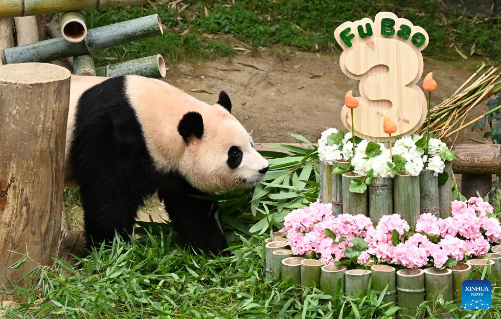 Giant panda celebrates 3rd birthday in Yongin, South Korea