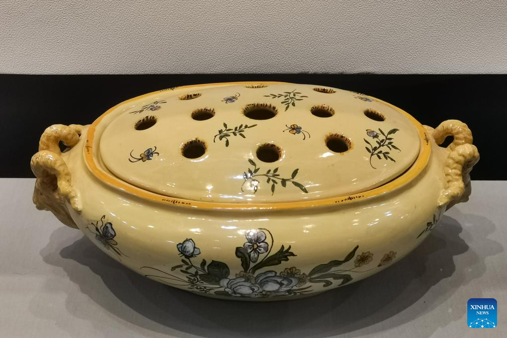 This photo taken on July 15, 2023 shows a painted pottery jar presented by Montpellier to Chengdu.