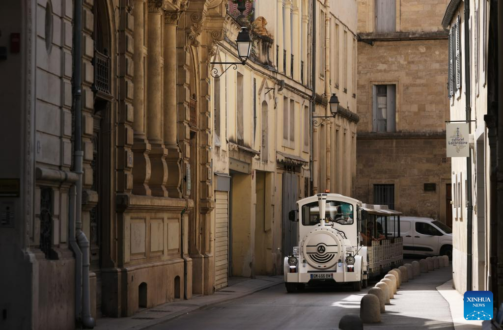 A sight-seeing vehicle runs on a street in Montpellier, France, July 19, 2023.