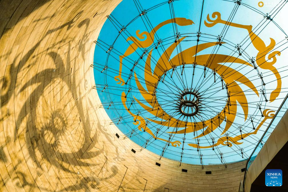 The Sun and Immortal Bird Gold Ornament is seen on the dome of the Jinsha Site Museum in Chengdu of southwest China's Sichuan Province on March 10, 2022.