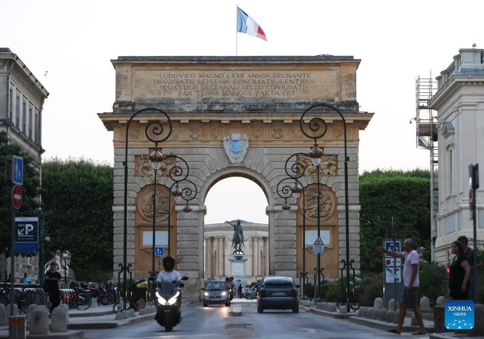 This photo taken on July 17, 2023 shows the Montpellier Arc de Triomphe in Montpellier, France.