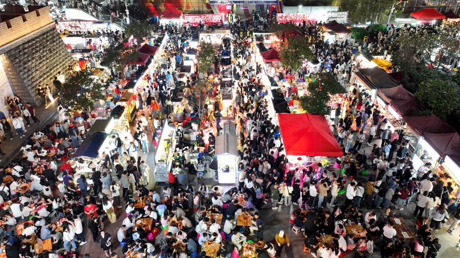 Tourists visit a night market in Liuzhou, south China's Guangxi Zhuang Autonomous Region, April 29, 2023. (Photo by Li Hanchi/Xinhua)