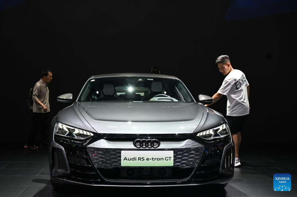 An Audi RS e-tron GT vehicle is displayed during the 20th Changchun International Auto Expo in Changchun, capital of northeast China's Jilin Province, July 20, 2023.