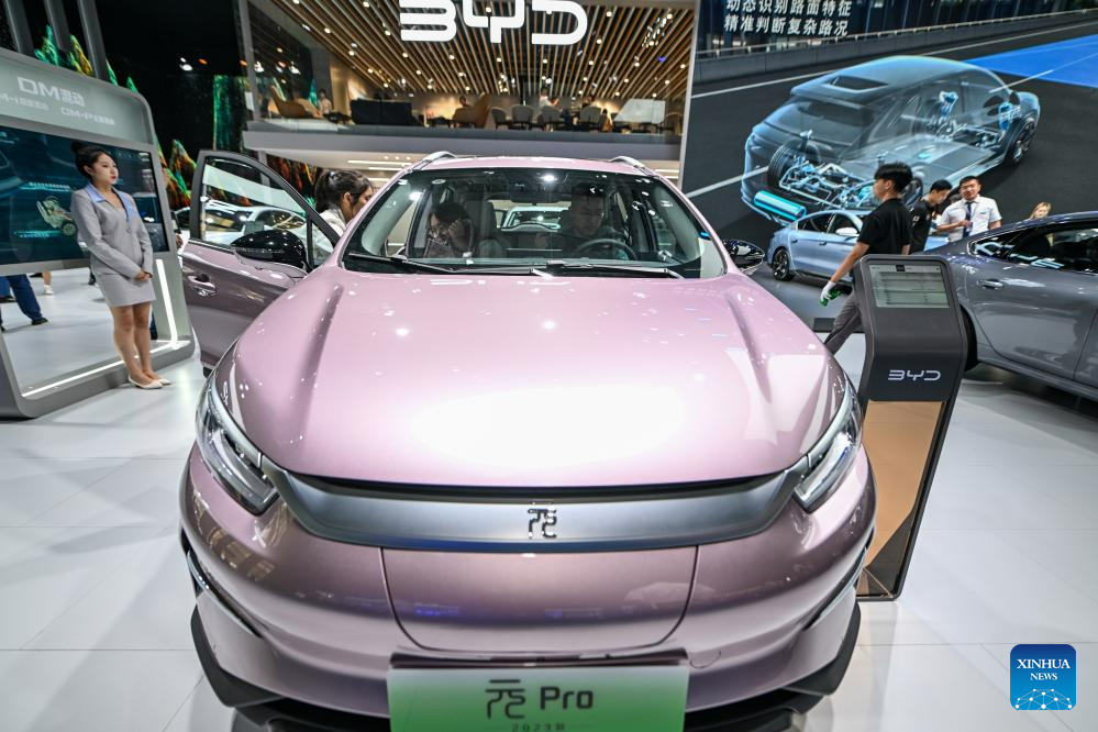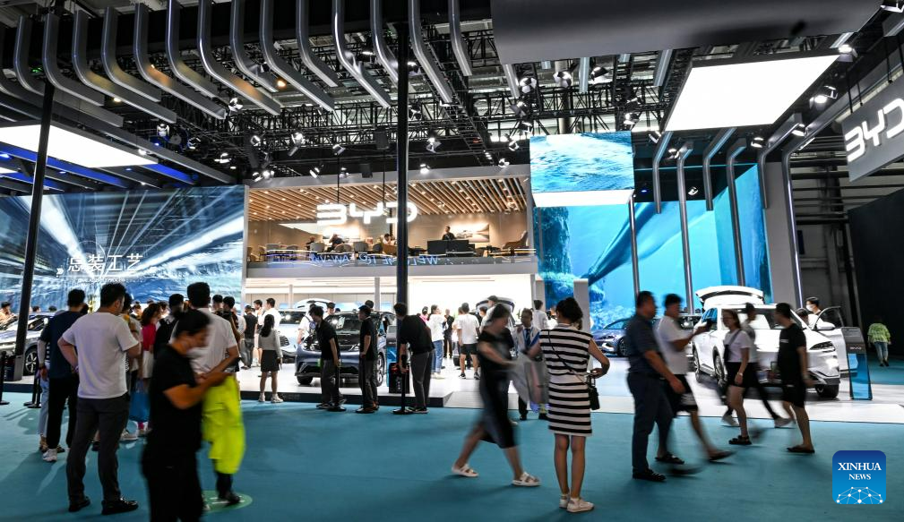 People visit the booth of BYD during the 20th Changchun International Auto Expo in Changchun, capital of northeast China's Jilin Province, July 20, 2023.