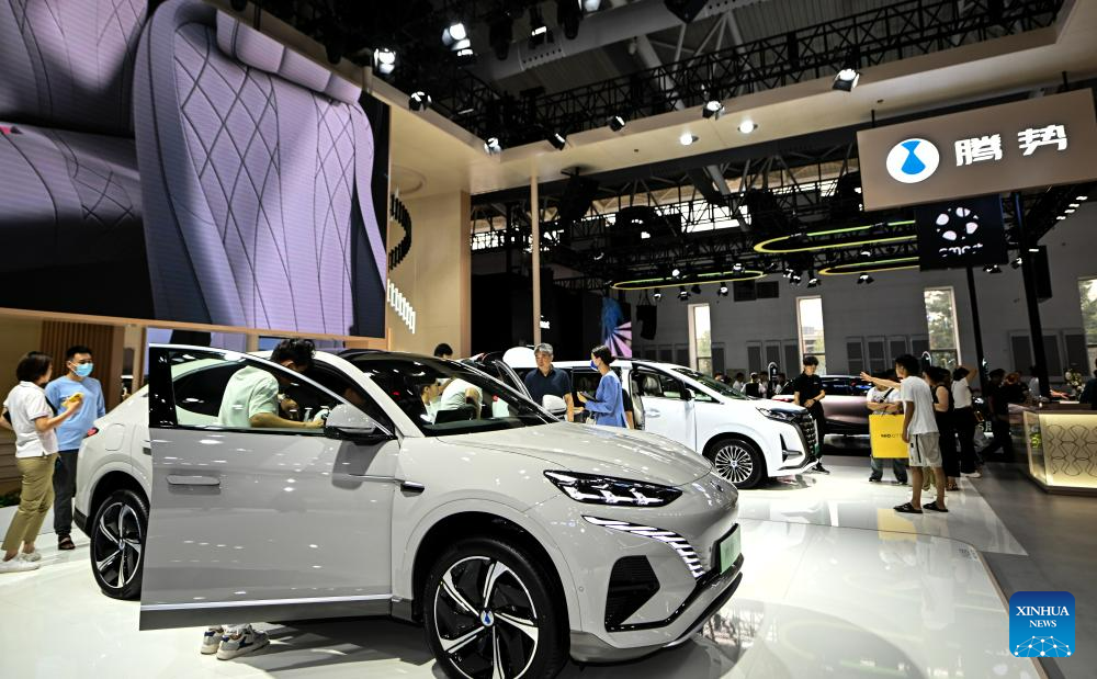 The expo displays more than 100 new energy vehicles (NEV). The NEV sales accounted for 27.7 percent of the country's total new vehicle sales in the first five months of this year. (Xinhua/Yan Linyun)