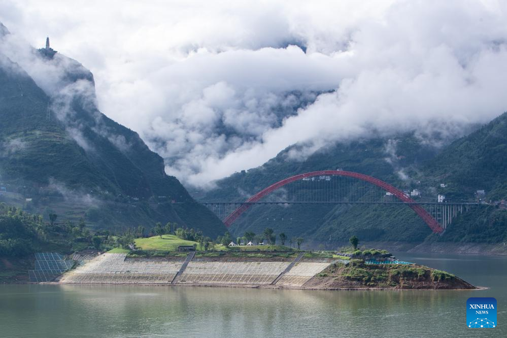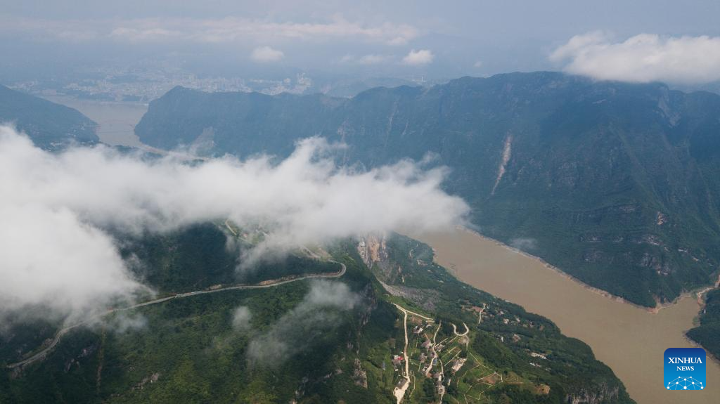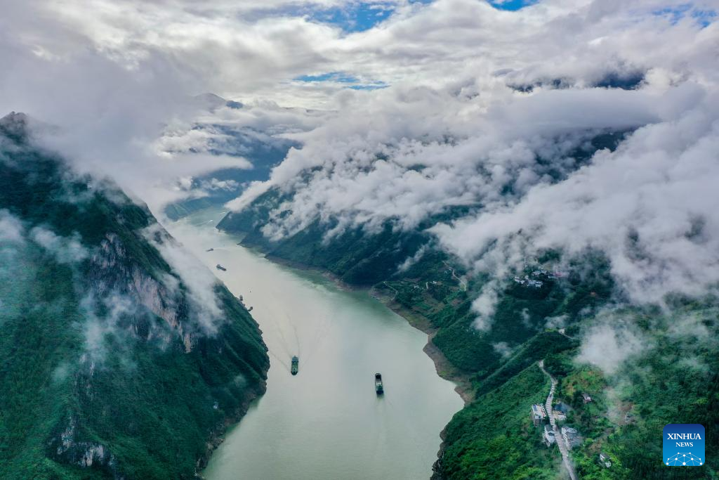 This photo taken on June 30, 2023 shows the scenery of Wuxia Gorge, one of the Three Gorges on the Yangtze River, in southwest China's Chongqing Municipality. Located in the upper reaches of the Yangtze River, the Three Gorges Reservoir area is an important ecological function zone and reservoir of freshwater resources in China.