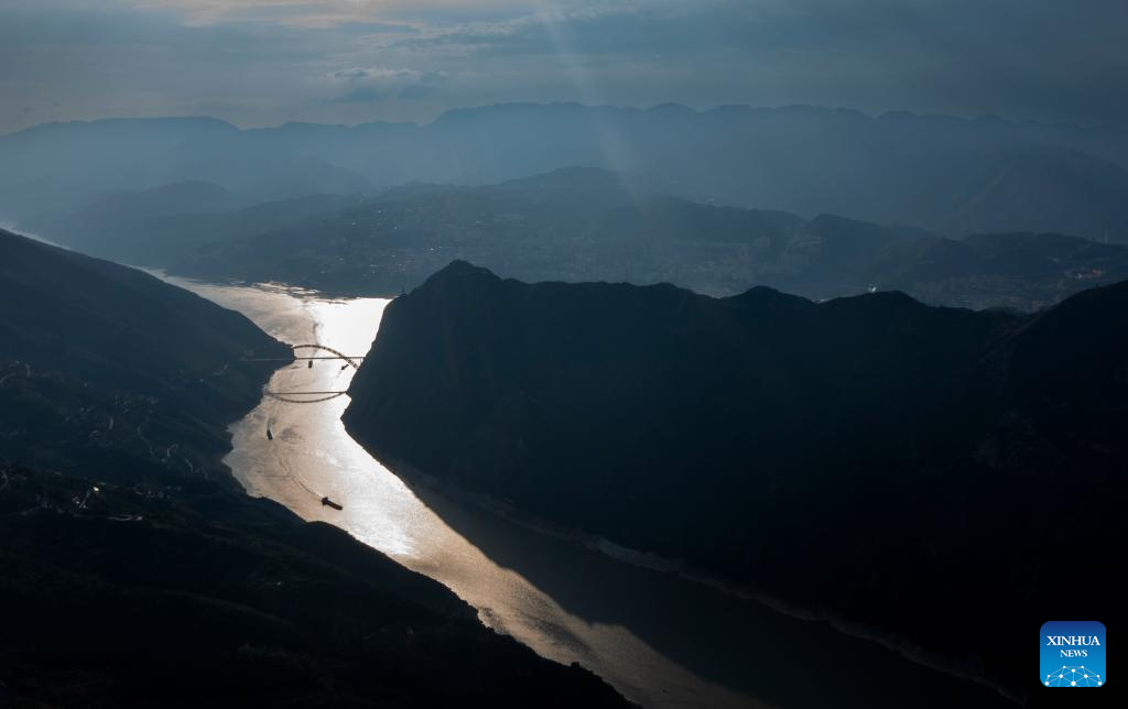 This aerial photo taken on March 29, 2023 shows the scenery of Xiling Gorge, one of the Three Gorges on the Yangtze River, in central China's Hubei Province. Located in the upper reaches of the Yangtze River, the Three Gorges Reservoir area is an important ecological function zone and reservoir of freshwater resources in China.