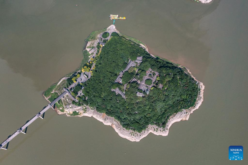This aerial photo taken on June 25, 2023 shows the view of Baidicheng, a popular tourist attraction sitting on the top of Baidi Mountain in Fengjie County, southwest China's Chongqing Municipality, which marks the front end of Qutang Gorge, one of the Three Gorges on the Yangtze River. Located in the upper reaches of the Yangtze River, the Three Gorges Reservoir area is an important ecological function zone and reservoir of freshwater resources in China.
