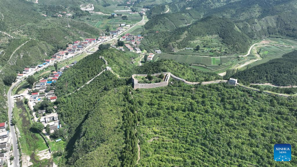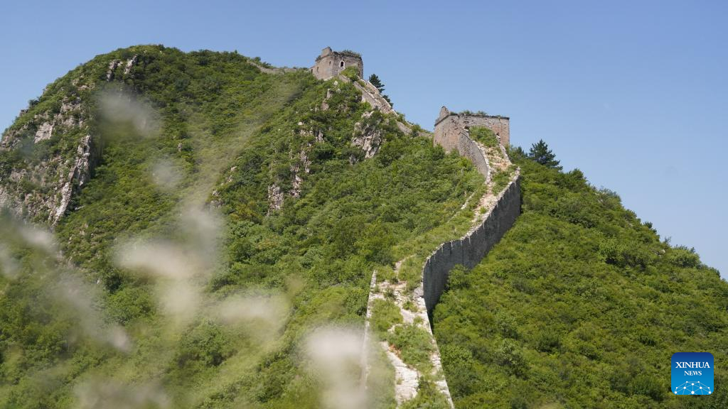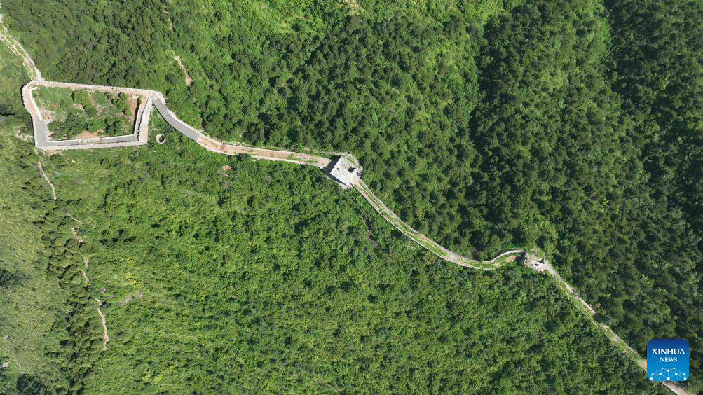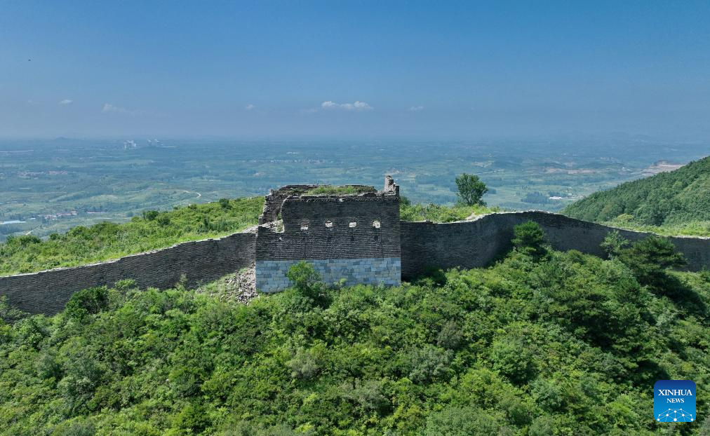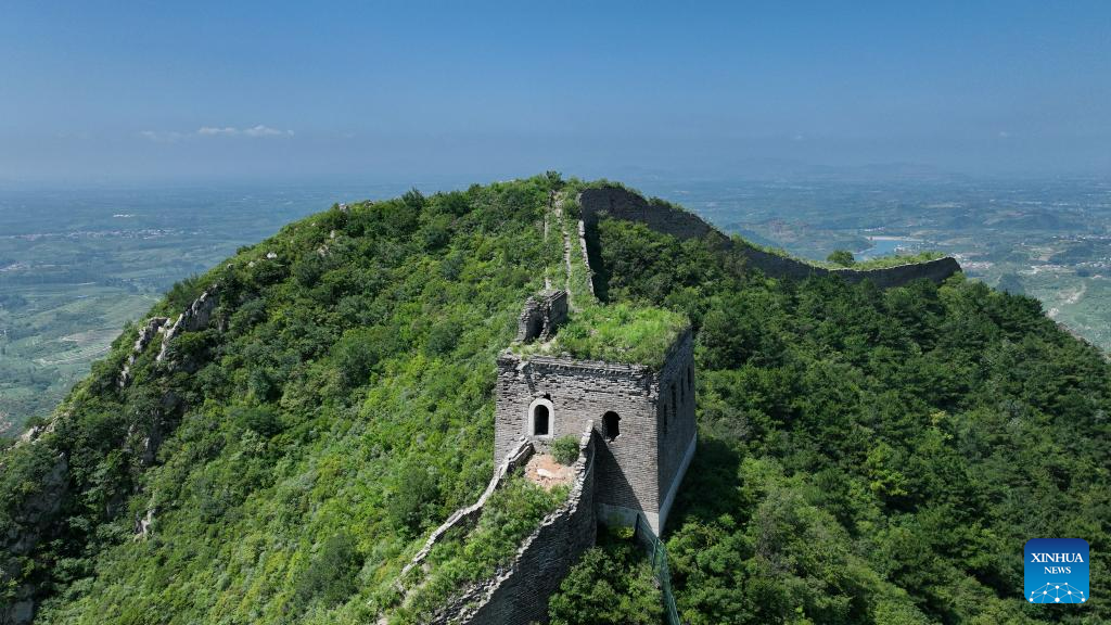 This aerial photo taken on July 23, 2023 shows the scenery of the Baiyangyu section of the Great Wall in Qian'an City of north China's Hebei Province. (Xinhua/Mu Yu)