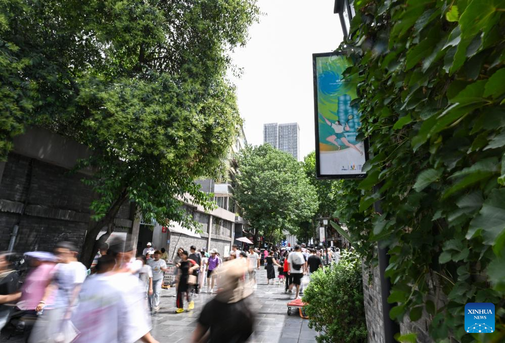Photo taken on July 14, 2023 shows a poster of the Chengdu Universiade in Chengdu, southwest China's Sichuan Province. The 31st International University Sports Federation (FISU) Summer World University Games will be held in Chengdu from July 28 to August 8. (Xinhua/Wang Xi)