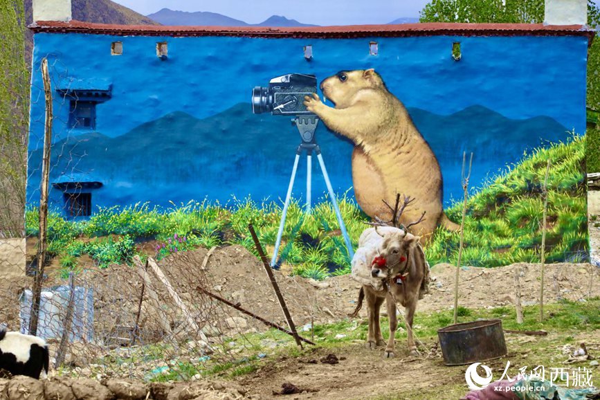 Lifelike paintings on walls of residential buildings in Qiacun village, Zangdog township, Dagze district, Lhasa, capital city of southwest China's Xizang Autonomous Region are capturing the attention of many people.