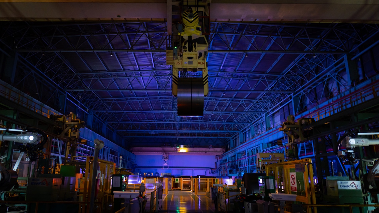 According to the person in charge of the workshop, the production line here is smart enough to run automatically without turning on any lights and is literally a ‘dark factory’. The vehicles are usually operated by human workers. But with smart operations, unmanned vehicles know how to find the required steel coils from the reservoir according to the production plan and then transport them to the specified position.