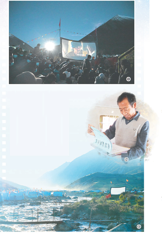 ③: An open-air cinema in Gyaca county, Shannan city, southwest China's Xizang Autonomous Region. (Photo/Zhao Lang)