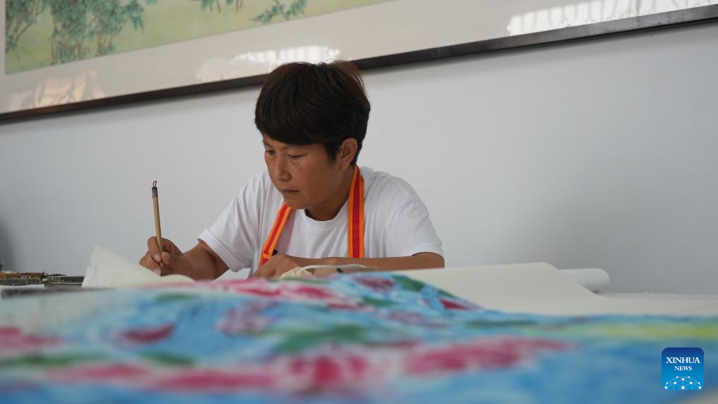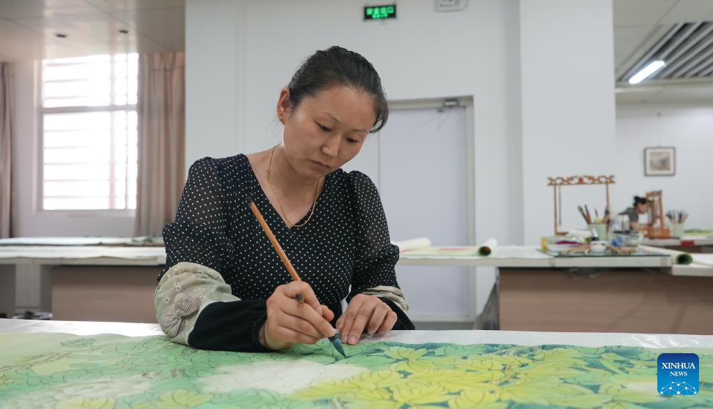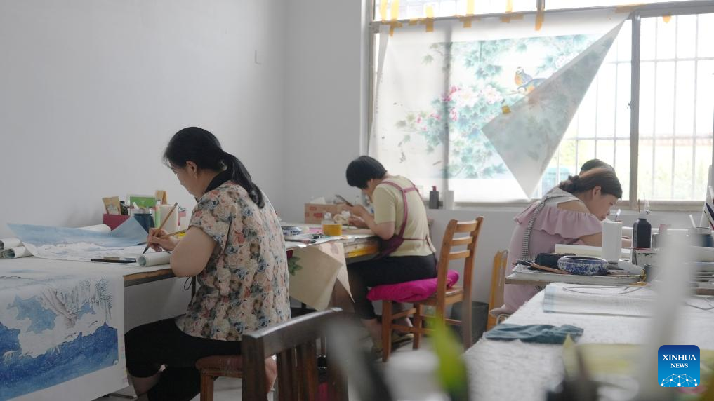 A worker paints at a workshop in Juye County, Heze City of east China's Shandong Province, July 24, 2023. (Xinhua/Jia Yunpeng)