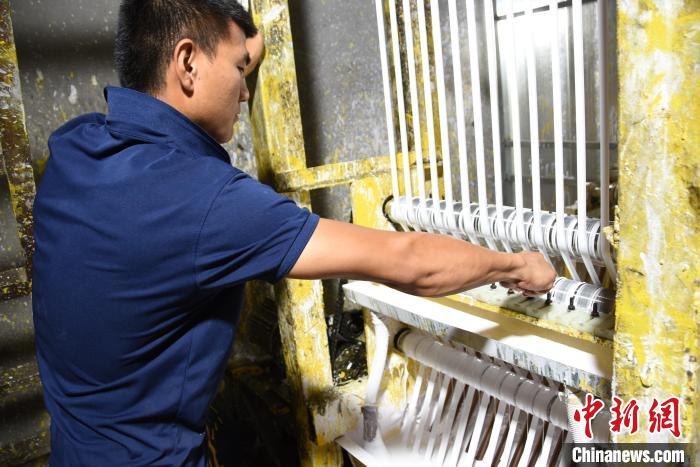 A worker checks on measuring tapes, which are printed at a factory in Yucheng county, Shangqiu city, central China's Henan Province. (Photo/Wang Yu)