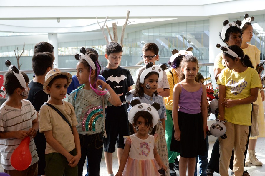 Children visit the panda house at Al Khor Park in Qatar to celebrate the fourth birthday of the giant panda Si Hai on July 26, 2023. (Xinhua/Wang Qiang)