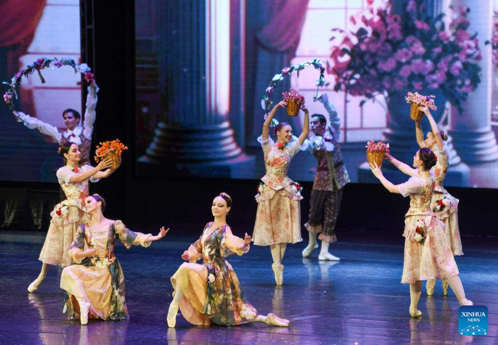 Dancers from the ballet troupe of the national grand theater of Belarus perform in the ballet "Sleeping Beauty" during the 6th China Xinjiang International Dance Festival in Urumqi, northwest China's Xinjiang Uygur Autonomous Region, July 25, 2023. (Xinhua/Wang Fei)