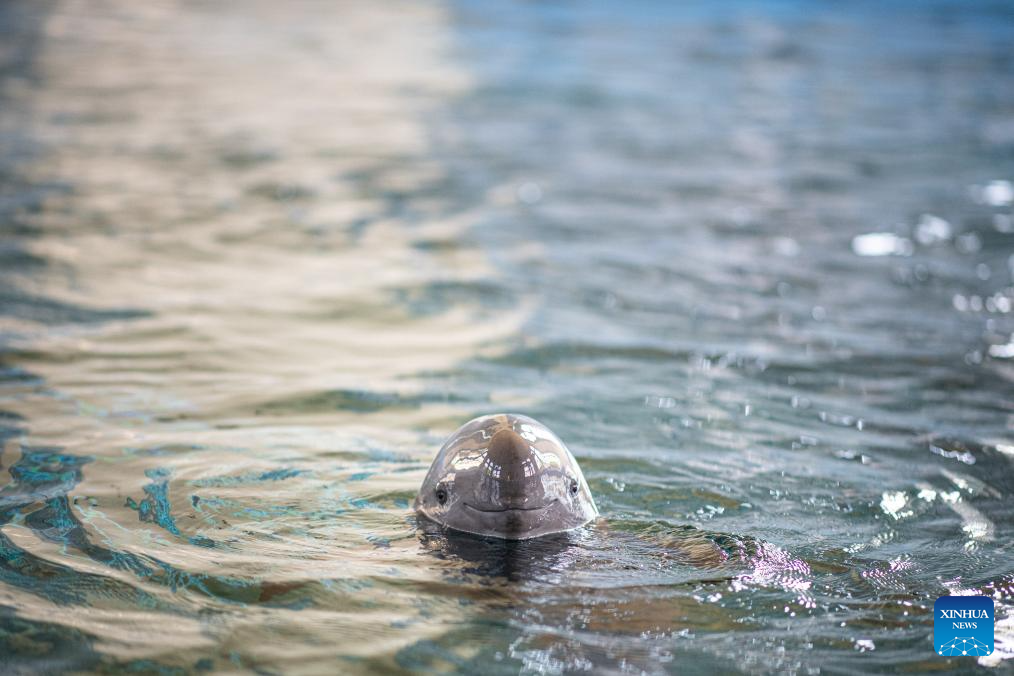 A Yangtze finless porpoise swims at the Baiji Dolphin House under the Institute of Hydrobiology, the Chinese Academy of Sciences (CAS) in Wuhan, central China's Hubei Province, on July 5, 2023. (Xinhua/Xiao Yijiu)