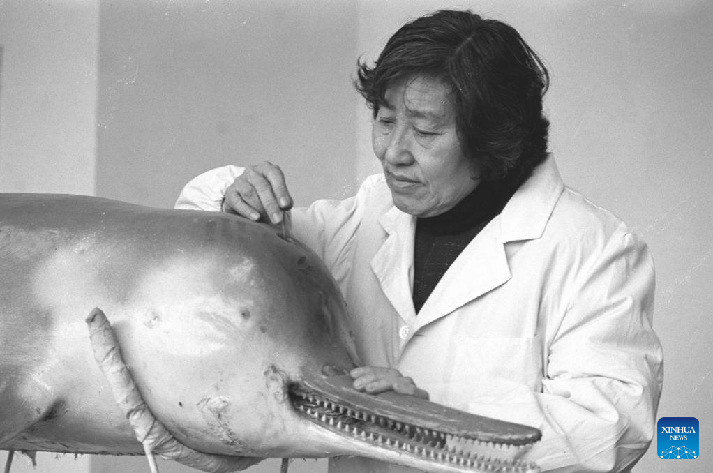 This file photo taken in the 1980s shows researchers of the Baiji dolphin research group under the Institute of Hydrobiology, the Chinese Academy of Sciences examining Baiji dolphin Qi Qi. (Xinhua/Yu Chengjian)