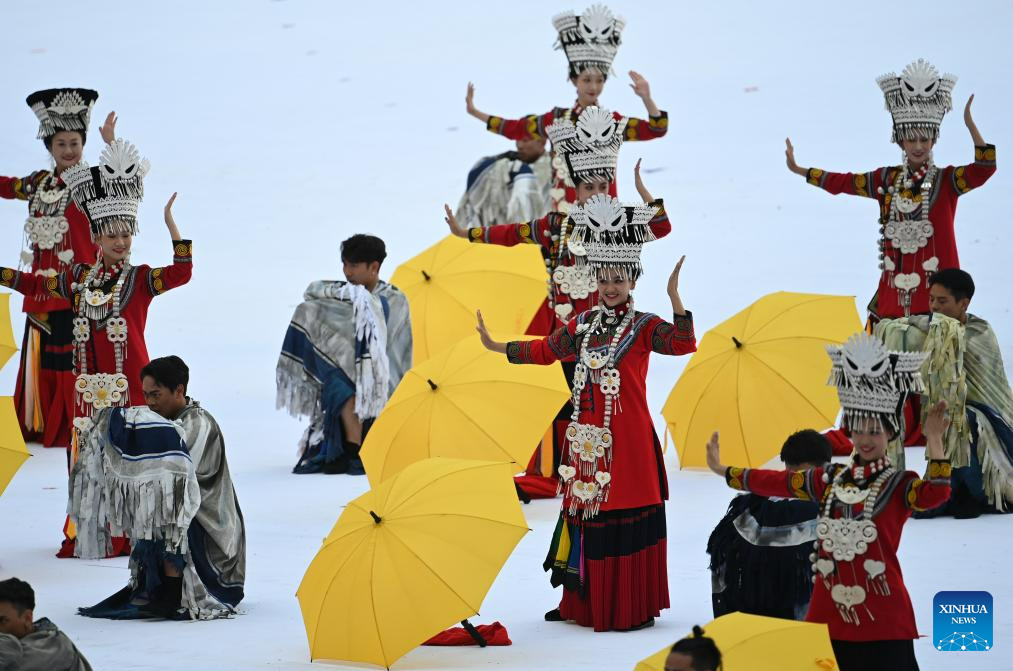 Artists perform prior to the opening ceremony of the 31st FISU Summer World University Games in Chengdu, southwest China's Sichuan Province, July 28, 2023. (Xinhua/Zhang Liyun)