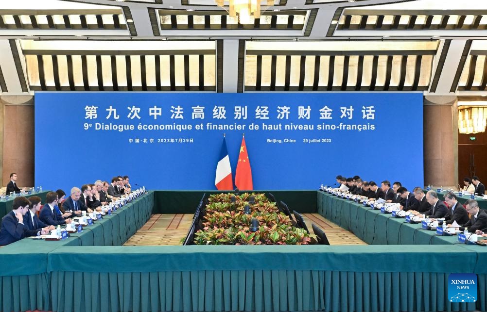 BEIJING, July 29 (Xinhua) -- Chinese Vice Premier He Lifeng on Saturday co-chaired the ninth China-France High Level Economic and Financial Dialogue in Beijing with Bruno Le Maire, Minister of Economy, Finance and Industrial and Digital Sovereignty of France.