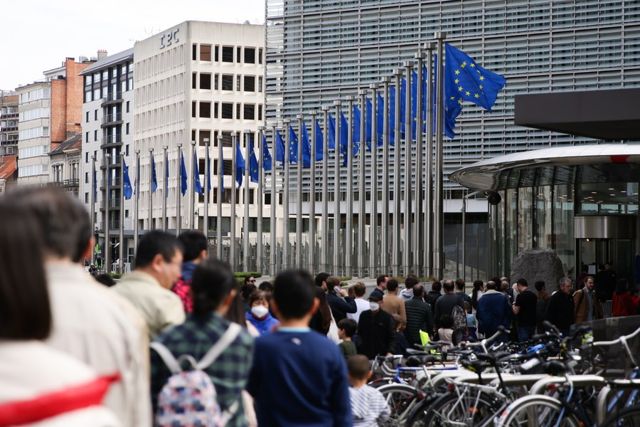 People queue to enter the European Commission building during the Open Day of the European institutions in Brussels, Belgium, May 6, 2023. (Xinhua/Zheng Huansong)