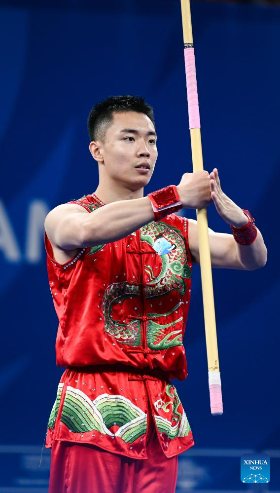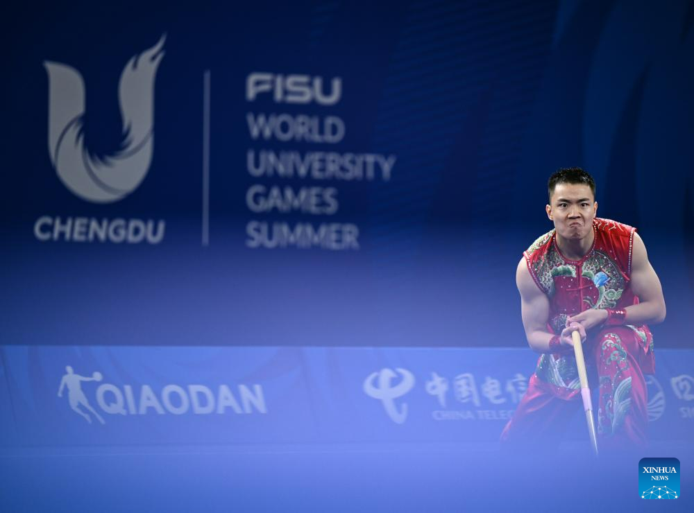 Cao Maoyuan of China competes during the Wushu Men's Nangun at the 31st FISU Summer World University Games in Chengdu, southwest China's Sichuan Province, July 30, 2023. (Xinhua/Wang Xi)
