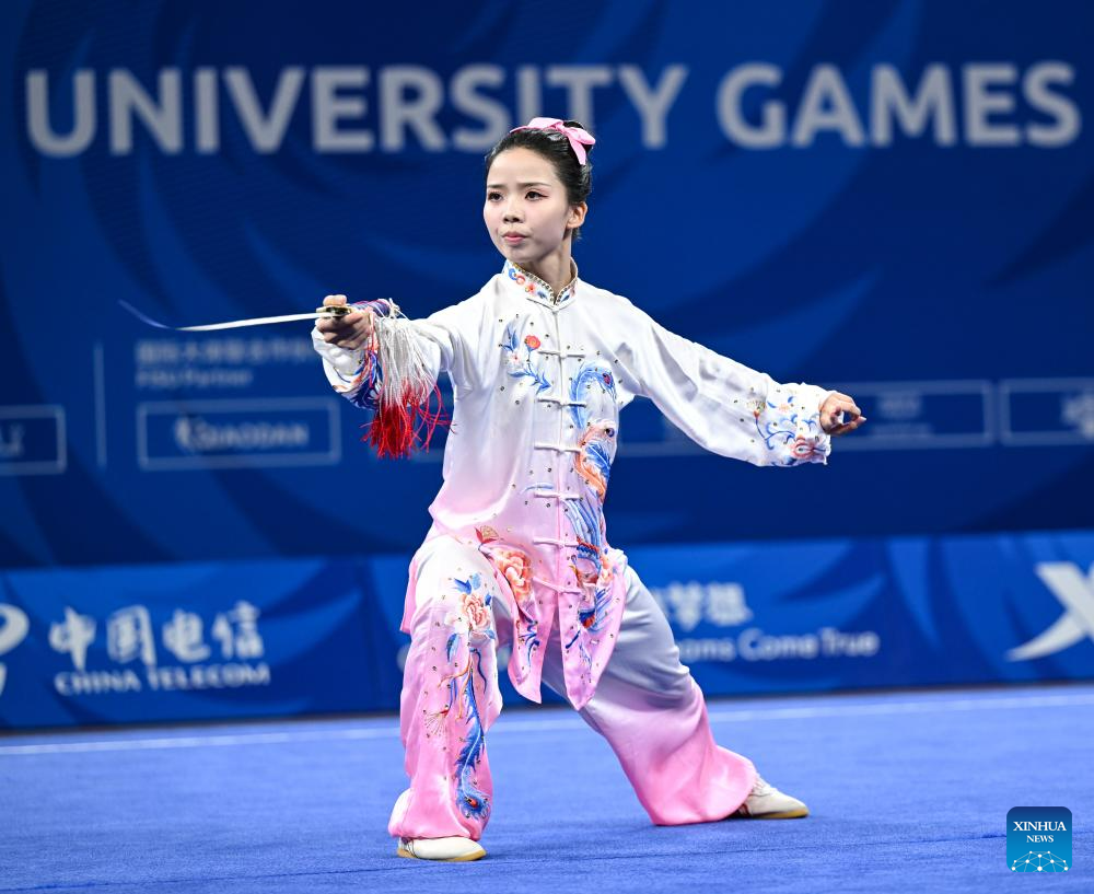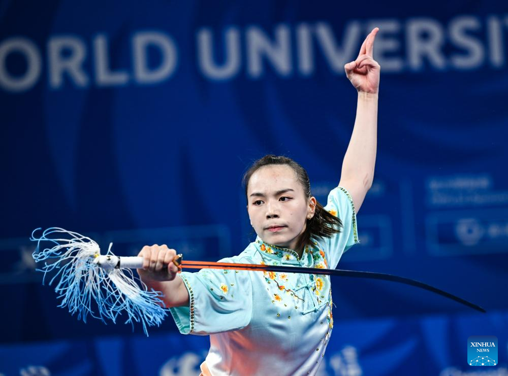 Chen Xiaoli of China competes during the Wushu Women's Taijijian at the 31st FISU Summer World University Games in Chengdu, southwest China's Sichuan Province, July 30, 2023. (Xinhua/Wang Xi)