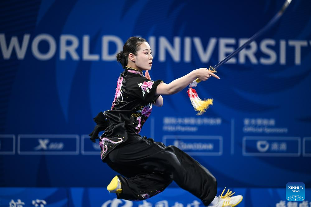 Furukawa Moka of Japan competes during the Wushu Women's Jianshu at the 31st FISU Summer World University Games in Chengdu, southwest China's Sichuan Province, July 30, 2023. (Xinhua/Wang Xi)