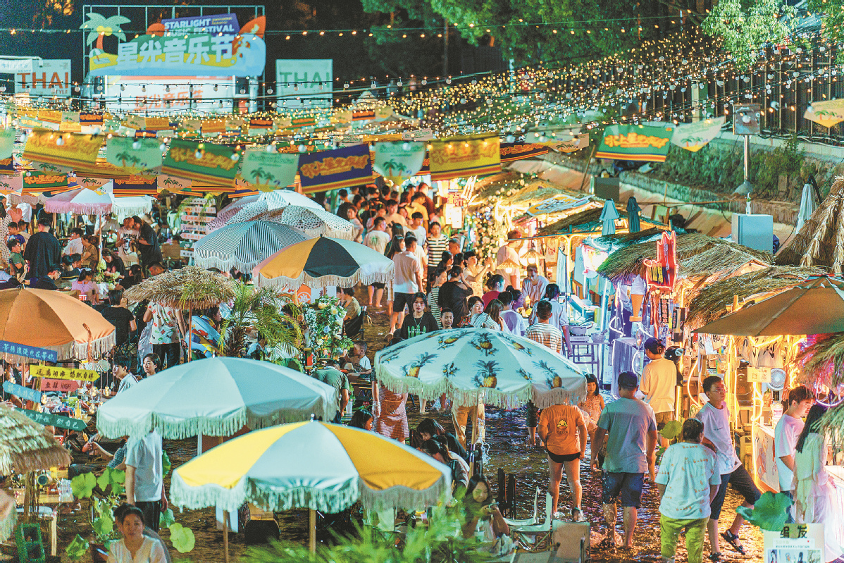 Visitors enjoy food and entertainment activities during the Starlight Music Festival in Yiwu, Zhejiang province, on July 13. [Photo/China Daily]