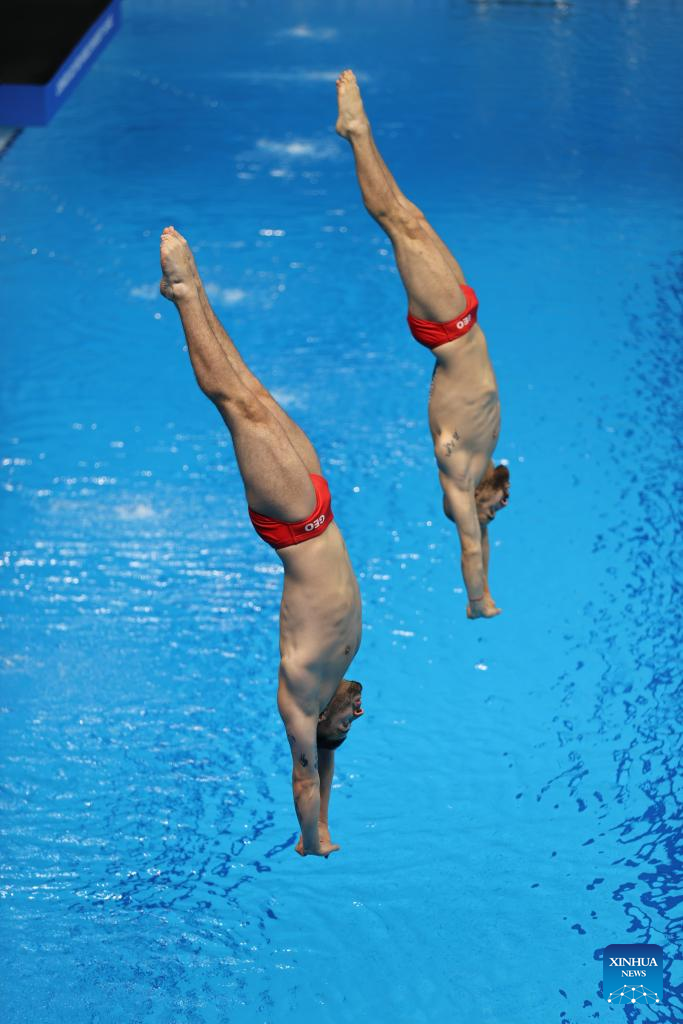 Tornike Onikashvili/Sandro Melikidze of Georgia compete during the Diving Men's Synchronised 3m Springboard final at the 31st FISU Summer World University Games in Chengdu, southwest China's Sichuan Province, July 31, 2023. (Xinhua/Wang Xiang)