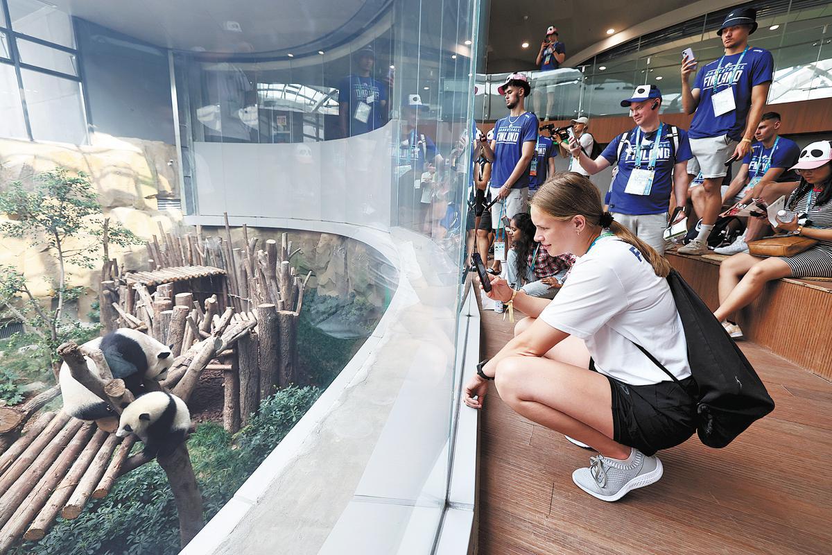 A special area in the research base has been designated for participants in the Chengdu games. It was packed on Monday morning with athletes and officials taking part in a tour on the sidelines of the games, and they all found the cuteness of the giant pandas to be irresistible.