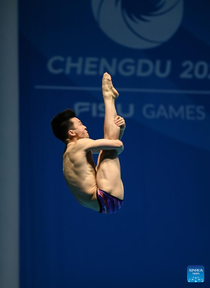 Kaneto Kai of Japan competes during the diving men's 3m springboard semifinal at the 31st FISU Summer World University Games in Chengdu, southwest China's Sichuan Province, Aug. 1, 2023. (Xinhua/Liu Kun)