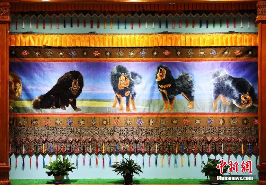 A Tibetan embroidery artwork is displayed at a workshop in Hainan Tibetan Autonomous Prefecture, southeastern Qinghai Province, Aug. 1, 2023. (Photo: China News Service/Xue Di)