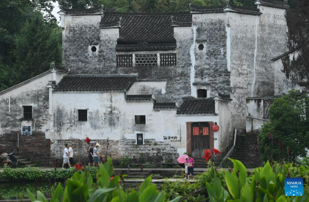 Tourists visit an ancestral hall at the Zhuge Village of Lanxi City, east China's Zhejiang Province, Aug. 1, 2023. The Zhuge Village, a historic gem with over 300 ancient buildings dating back to Ming and Qing dynasties (1368-1911), is home to descendents of Zhuge Liang, a renowned military strategist in the Three Kingdom Period (220-280). The village has made concerted efforts to preserve the ancient heritages and develop tourism, receiving over 500,000 visitors annually. (Xinhua/Weng Xinyang)