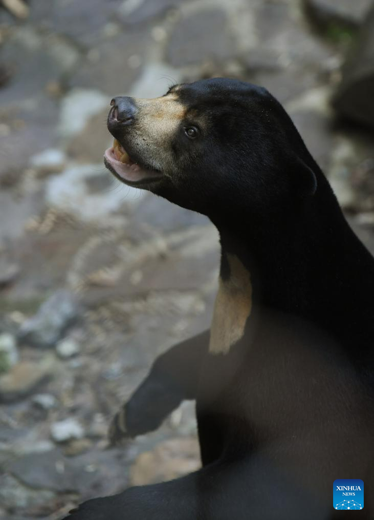 A sun bear is seen at Hangzhou Zoo in Hangzhou, east China's Zhejiang Province, Aug. 2, 2023. A video of a four-year-old sun bear standing upright like a human being at Hangzhou Zoo in east China's Zhejiang Province went viral on social media recently, attracting an increased number of tourists coming here to see it. (Xinhua/Weng Xinyang)