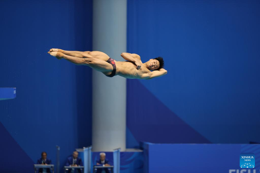 Liang Chaohui of China competes during the diving men's 3m springboard final at the 31st FISU Summer World University Games in Chengdu, southwest China's Sichuan Province, Aug. 2, 2023. (Xinhua/Liu Kun)